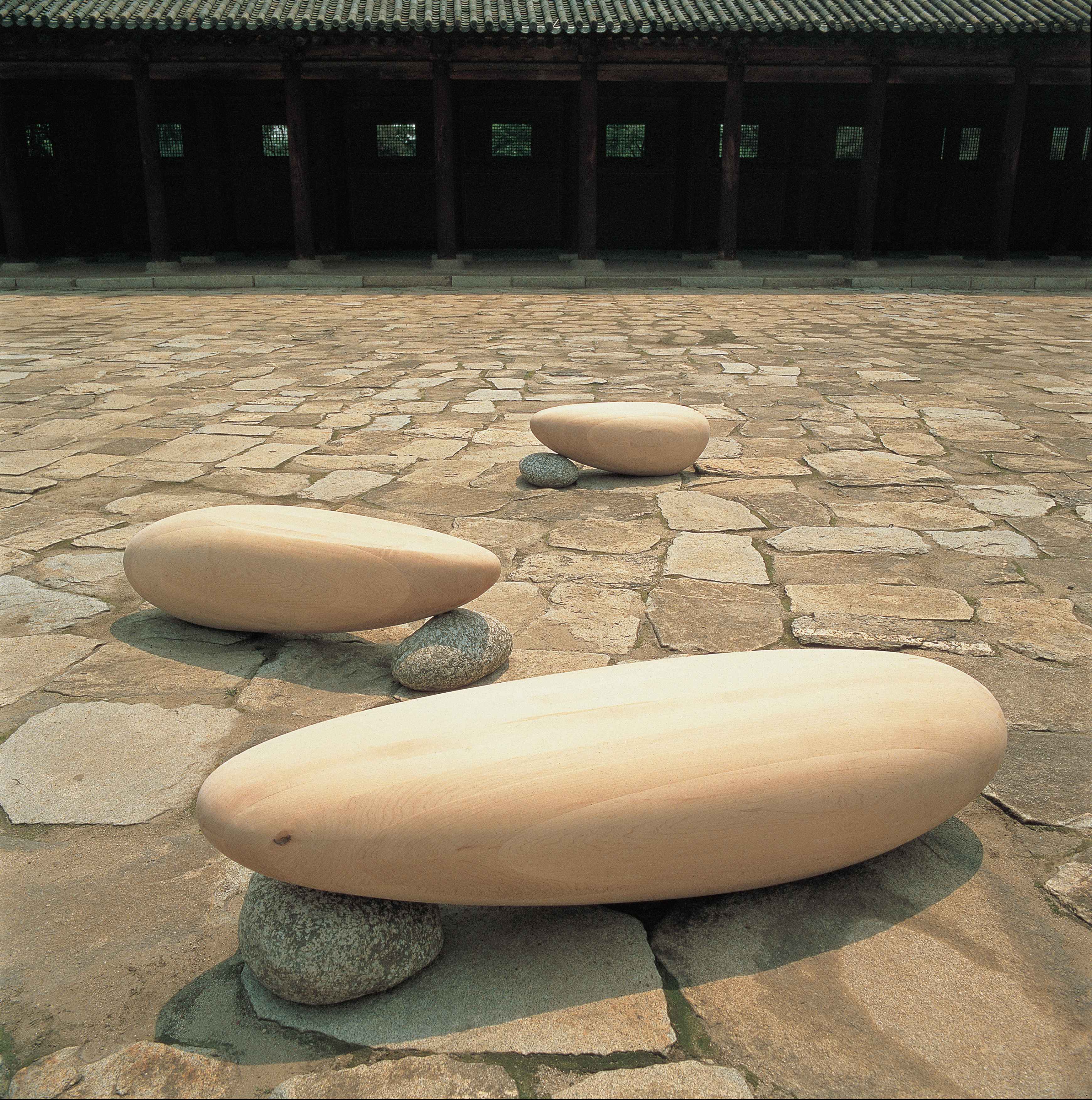 white oak, natural stone